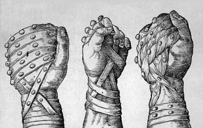 Каждый, кто интересовался вооружением европейских рыцарей, наверняка обращал внимание на их бронированные перчатки. В то время как основной целью перчаток была защита руки, создатели перчаток не могли упустить шанс использовать их в качестве кастетов. В конце 14-го века оружейники начали крепить металлические гвоздики и шипы, называемые гадлинги, на костяшки рыцарских рукавиц. Это по сути было оружием последней надежды, если вдруг у рыцаря выбивали меч.10. Нож-кастет