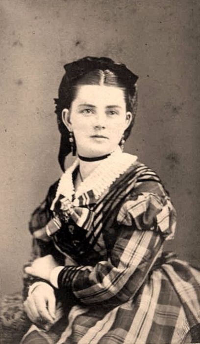 12. Юная дама в платье с клетчатым узором, который был модным вплоть до 1865 года