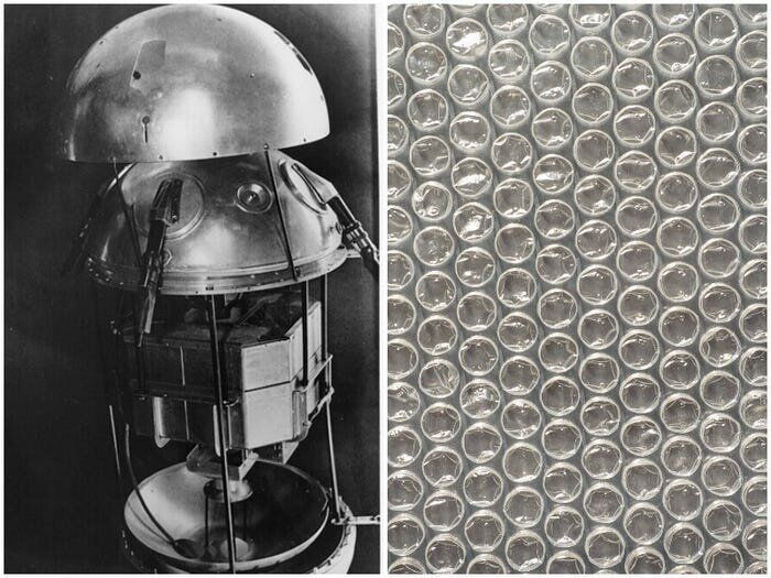 5. В 1957 году в Советском Союзе был запущен первый спутник. Два американских инженера также случайно изобрели пузырчатую пленку. Советский Союз запустил первый спутник, в 1957 году. Инженеры Альфред Филдинг и Марк Шаванн пытались создать текстурированные обои, используя занавески для душа, в 1957 году, но вместо этого получили пузырчатую пленку. Они не использовали ее в качестве упаковочного материала до 1961 года.