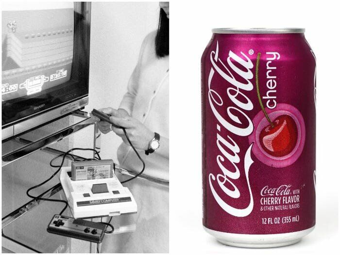 8. Nintendo Entertainment System (NES) Nintendo того же возраста, что и Cherry Coke, 1985 года. Nintendo Entertainment System (NES) от Nintendo была выпущена в США в 1985 году, и ей приписывают оживление американского рынка видеоигр. Coca-Cola также запустила Cherry Coke в США в 1985 году.