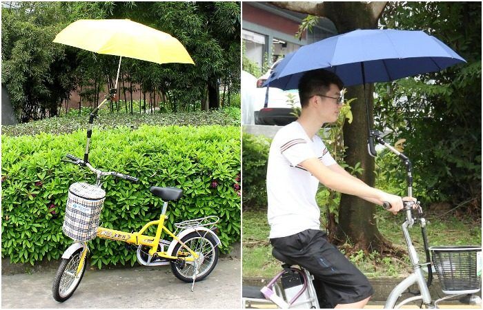 В Японии запрещено ездить на велосипеде, держа зонт одной рукой. По этой причине на руль устанавливают специальной держатель, в которой можно установить зонтик, чтобы комфортно себя чувствовать. Кстати, японцы используют зонт не только от дождя, но и от солнца, поэтому приспособление актуально почти круглый год.