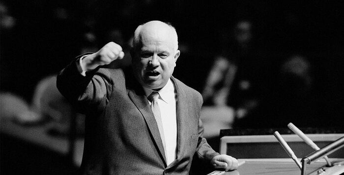 Как генеральный секретарь СССР, Хрущёв часто держал речи. Некоторые фразы оттуда мы до сих пор активно используем - преимущественно в ироническом смысле. “Наши цели ясны”, иногда - “Наши цели ясны, за работу, товарищи!” - это урезанная цитата из речи Хрущёва на съезде партии в 1962 году. Только что Советский Союз запустил в космос человека, по орбите летают советские спутники, комсомольцы с песнями едут на целину, Кастро объявил на Кубе социализм, советский врач на Антарктиде сам вырезал себе аппендикс - в общем, на фоне всех этих потрясающих новостей речь восприняли с неподдельным энтузиазмом, а лозунгом про цели украсили все конторы, школы, военные части и просто улицы. Фраза стала крылатой - сейчас бы это назвали мемом. “История на вашей стороне, а вас мы закопаем!” - эта агрессивная фразочка на самом деле тоже усечена и к тому же изменена. Сам Хрущёв в разговоре с иностранными дипломатами использовал слово “похороним”, отсылая к тезису Маркса о том, что пролетариат - могильщик капитализма. Дипломаты Маркса не читали и восприняли фразу буквально; уже в наше время её безо всякой иронии любят писать в дискуссиях сталинисты (и многие из них уверены, что она произнесена Сталиным).