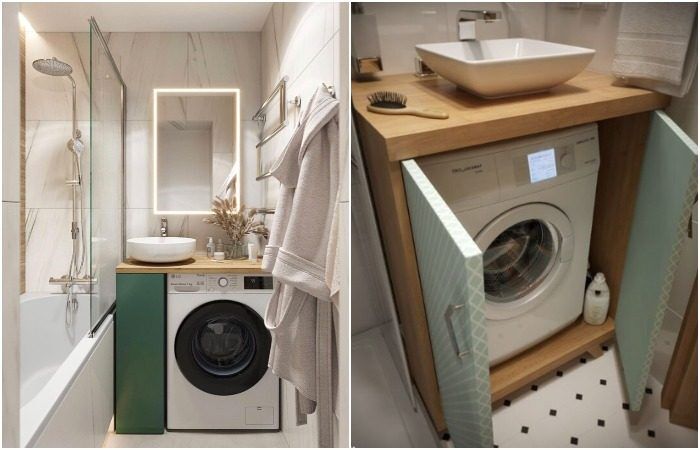 Санузлы в маленьких квартирах редко отличаются большой площадью, поэтому во время их обустройства начинается игра в тетрис. Приходится думать, что выбрать – ванную или душевую кабину, повесить зеркало с полками или без них, установить раковину на ножке или купить накладную. Но главный вопрос – куда деть стиральную машину, ведь иногда места нет даже для компактных моделей.