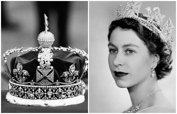 Корона с Кох-и-Нуром и Королева Елизавета II. \ Фото: fanpage.it.