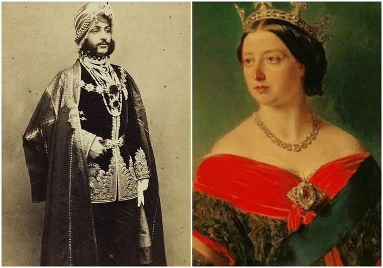 Махараджа Далип Сингх в церемониальном наряде в 1861 году, после своего изгнания. \ Королева Виктория с Кох-и-Нуром в качестве броши. \ Фото: theconversation.com. \ i.pinimg.com