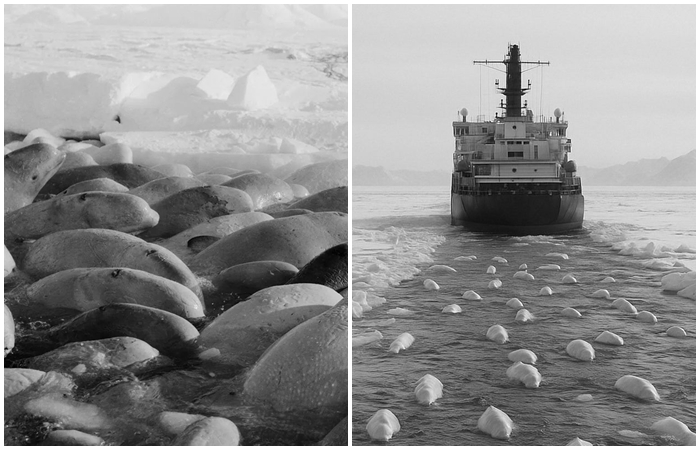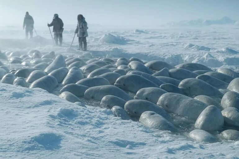 Попавшие в ловушку белухи. \ Фото: petmaya.com.