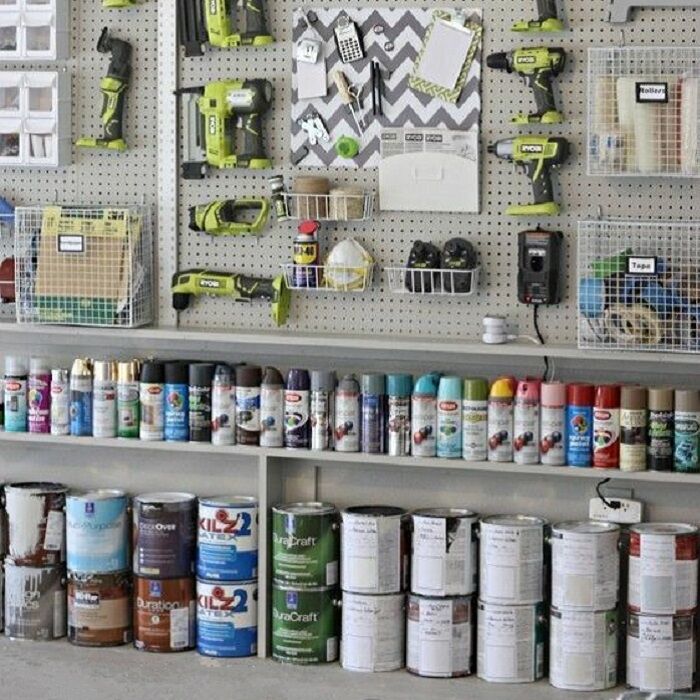 Установите вертикальные системы организации – стеллажи и перфорированные панели (их естественное удобство дополняется широким ассортиментом совместимых крючков, перемещаемых полочек и всевозможных органайзеров). Работайте с основами, а затем расширяйте их по своему усмотрению. Учитывайте вес размещаемых предметов: некоторые панели могут работать лишь с легкими ручными инструментами и недостаточно прочны для подвешивания тяжестей.