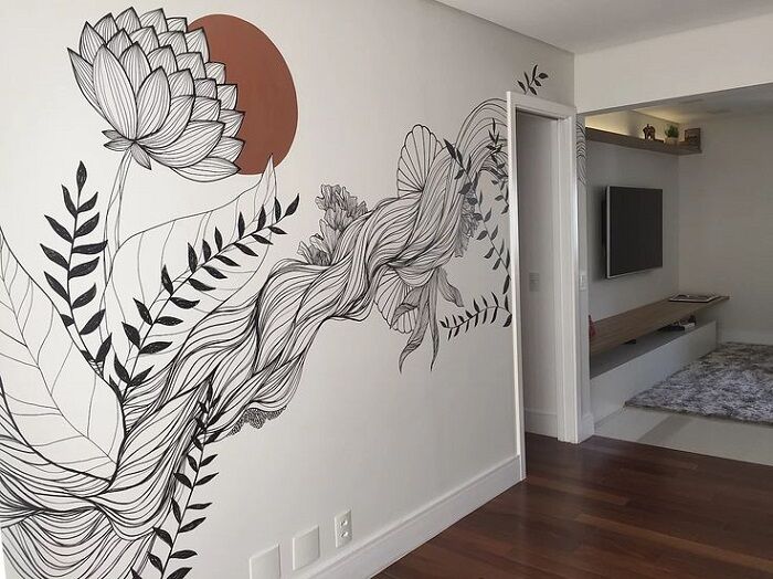 Если вы хорошо рисуете или среди ваших знакомых есть человек, который сможет создать на стене настоящее произведение искусства, обязательно воспользуйтесь этой возможностью. Изображение может быть абсолютно любым, начиная от абстракции и заканчивая растительными мотивами – окончательный вариант будет зависеть от стилистики интерьера и ваших личных предпочтений. Так, например, в минималистичной обстановке хорошо будет смотреться графика, а в классической – барочные мотивы.