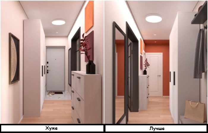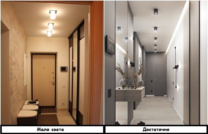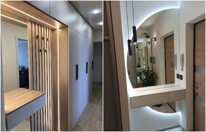 Пожалуй, самым главным в маленькой прихожей является продуманное освещение, ведь в большинстве случаев здесь нет окон, а глухие стены не позволяют получить хотя бы немного естественного света из соседней комнаты. Поэтому многоуровневая система с несколькими сценариями – это не роскошь, а необходимость.