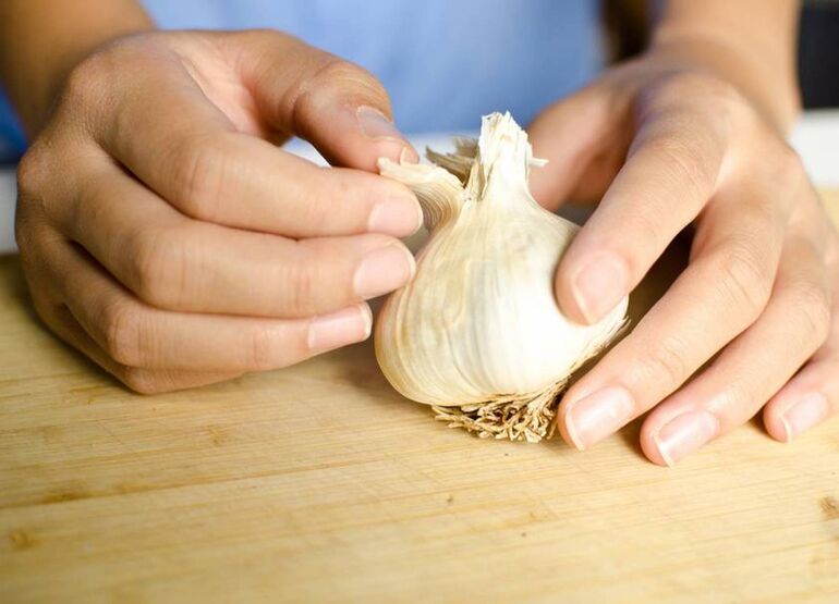 Правильно нужно не только чистить чеснок, а и руки после, чтобы не было едкого запаха.