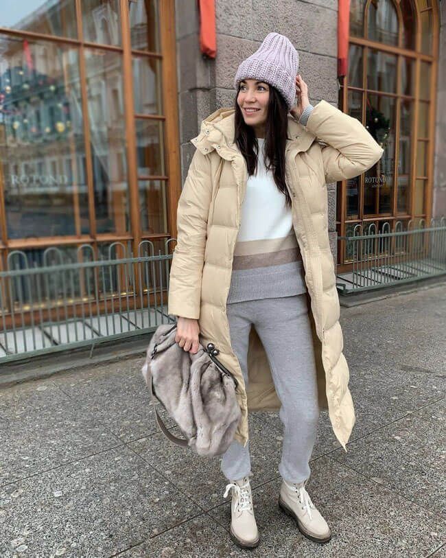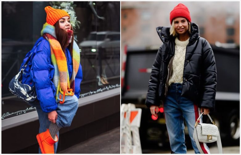 Ещё один привычный, но тем не менее незаменимый аксессуар на зимнее время года — головной убор. Его яркий цвет, как и сумка, помогут преобразить пуховик, позволят взглянуть на него по-новому, под иным ракурсом. Это может быть что угодно, всё зависит от погоды и температуры на улице. С пуховиками хорошо смотрятся как стандартные вязаные шапки, так и кепки, ведь существуют специальные, зимние варианты на меху или с иным дополнительным утеплением изнутри. Простая, но привычная и много с чем сочетаемая шапка-бини, лучше подбирать её либо в самых кричащих оттенках, либо базовых, милый и женственный чепчик, которые сделает образ более воздушным и светлым, а также балаклава, но для неё будет необходимо подобрать зимние кроссовки, чтобы получился спортивный стиль. Выбор безграничен, это могут быть и привычные модели, такие как кепи или беретки, шапки-ушанки, шляпы с широкими полями, делающие любой образ, даже с пуховиком просто роскошным. Но можно выбрать и какой-то теплый платок или палантин, и завязать его на голове, такой вариант тоже возможен. Шляпы и платки обычно хорошо смотрятся с укороченными моделями, остальные варианты подойдут как к длине миди, так и макси.