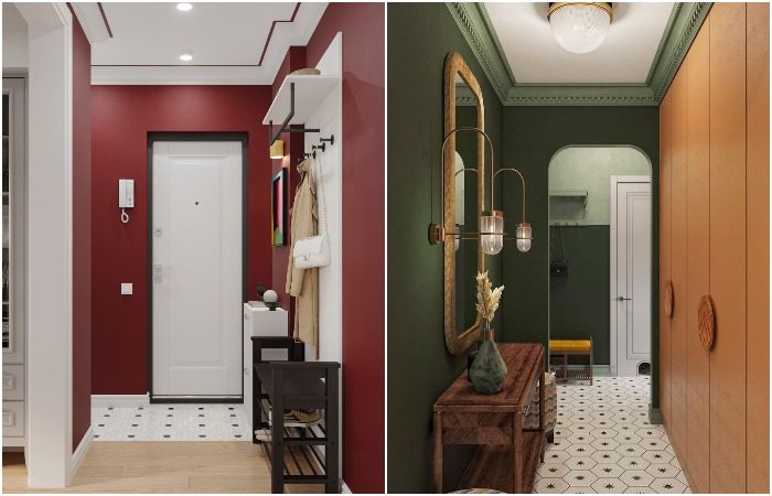 Прихожую привыкли воспринимать исключительно с практической точки зрения, а ведь она может стать одновременно и красивым арт-объектом. Чтобы добиться такого результата, используйте цветное зонирование. Например, вы можете выделить ярким цветом входную зону, а также дверные проемы. Что касается мебели, расположенной в коридоре, то она может быть либо нейтральной, либо такой же яркой (но здесь важно выбрать правильный оттенок, чтобы не перегрузить пространство). Эффекта вагона получится избежать, если сделать двери в ванную скрытыми, под цвет стен, а вход в кладовку замаскировать под фасад шкафа.