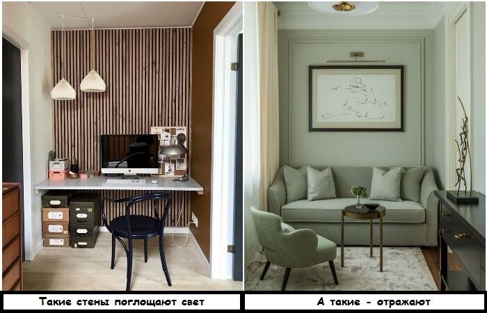 Отделка – один из важнейших аспектов оформления квартиры, особенно темной. Некогда популярные рейки, которые раньше можно было увидеть в каждом втором интерьере, вряд ли помогут вам добиться желаемого эффекта – они поглощают свет и делают комнату мрачной.