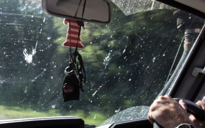 Во время скоростного движения по трассе мошки так и норовят удариться о стекло