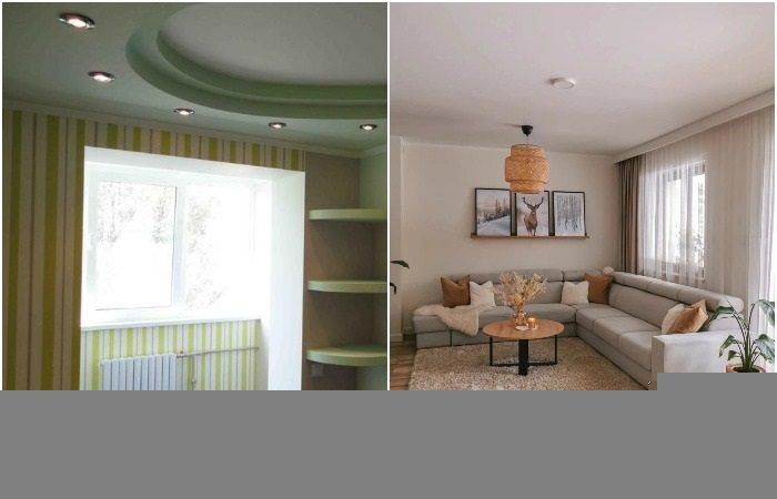 • В первую очередь речь идет о многоярусных конструкциях из гипсокартона. Такие были в моде в 2000-х годах в эпоху евроремонта, и до сих пор остались в некоторых многоэтажках.