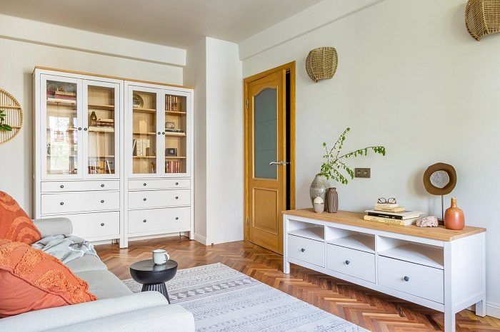 При выборе мебели отдавайте предпочтение заниженным моделям. Это касается абсолютно всего – кроватей, шкафов, диванов, кресел, комодов и пр. Пожалуй, единственным исключением из этой ситуации может стать шкаф-купе с зеркальными дверцами, так как он зрительно делает пространство выше и шире.