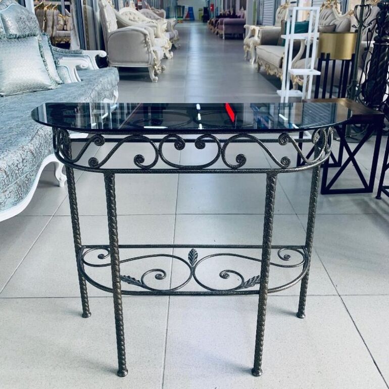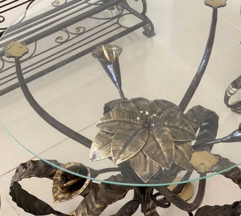 Добиться гармоничной комбинации легко, если сочетать металл с натуральными материалами или прозрачными поверхностями. Например, небольшие декоративные перегородки из кованого железа вкупе со стеклянными вставками смотрятся современно и не перегружают пространство. Отличным решением станут журнальные и обеденные столики на кованых ножках, столешница у которых выполнена из стекла или светлого дерева.