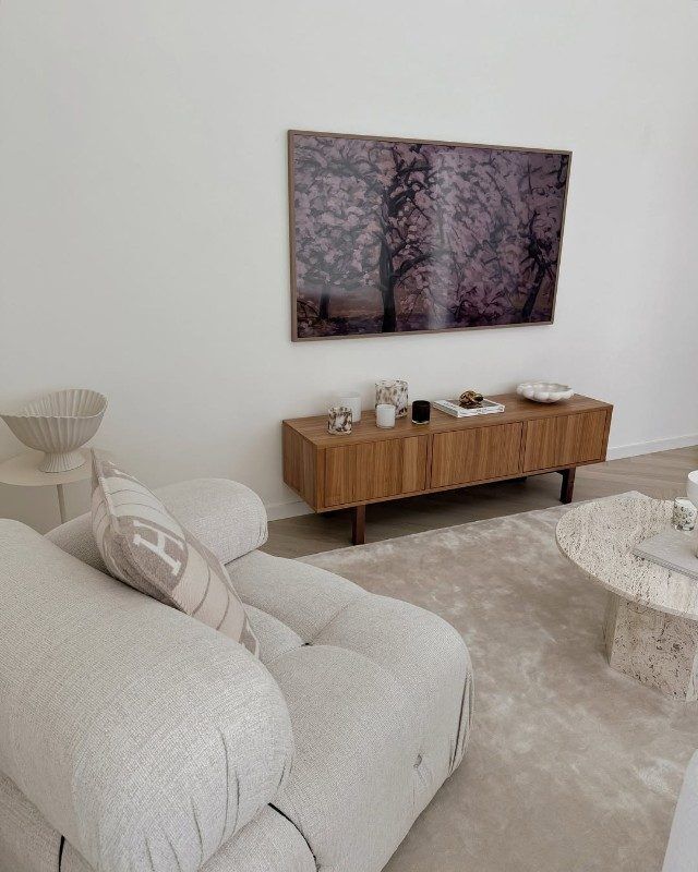 Громоздкий черный экран может выбиваться из общего настроения, особенно если интерьер светлый и минималистичный. Решение – использовать подвесные конструкции, встроенные панели или ТВ с эффектом картины. В выключенном состоянии он просто сливается со стеной или становится стильным элементом.