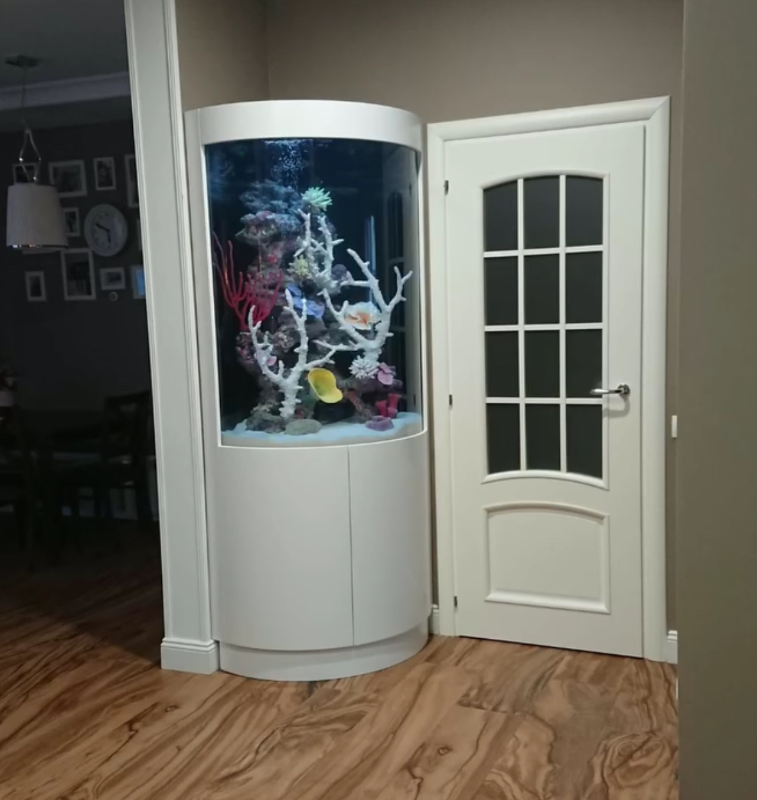 Аквариум в интерьере не ограничивается стандартными прямоугольными формами. Вдохновляйтесь трендами:
