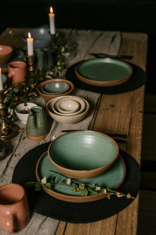 В моде слегка неровные края, матовая глазурь, природные оттенки – песочный, молочный, глина, оливковый. Такая посуда выглядит тактильно и спокойно.