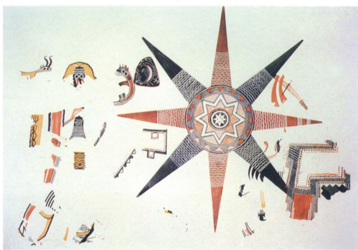Например, эта «звездная» фреска, найденная археологами, была создана в древней Иордании и представляет собой, по версии ученых, космологическую карту. В центре расположен «известный мир», «первый океан», «второй мир» и «второй океан». С восьми точек, которые, скорее всего, символизировали острова, располагались «запредельный мир» и «небесный океан». Прямоугольник, расположенный внизу справа, по версии историков, к делу не относится – это чертеж какого-то здания (возможно, храма).