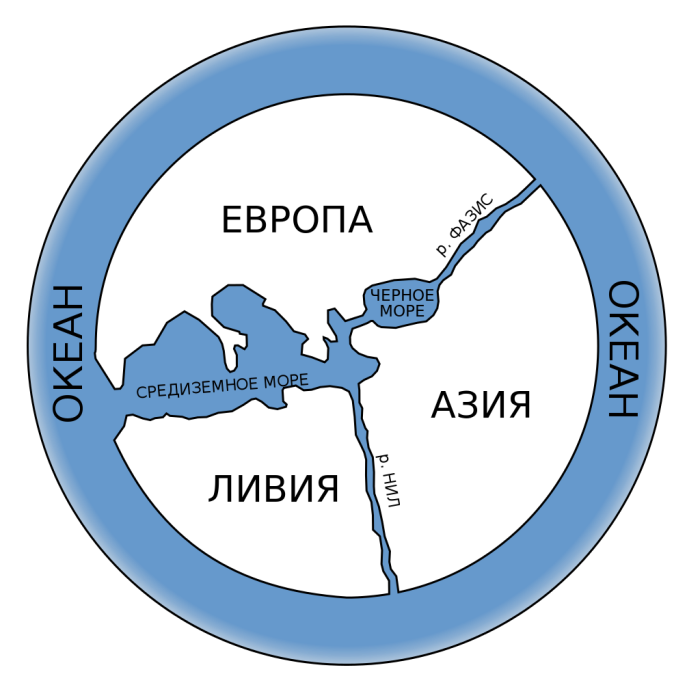 Схематично и доступно: Т - море, О - океан. Историки называют такой тип карт «Т-О». /Фото:noosphere.ru/