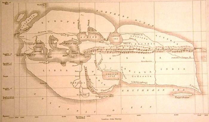 Ученые считают, что карта Эратосфена выглядела так. /Фото:.blogspot.com