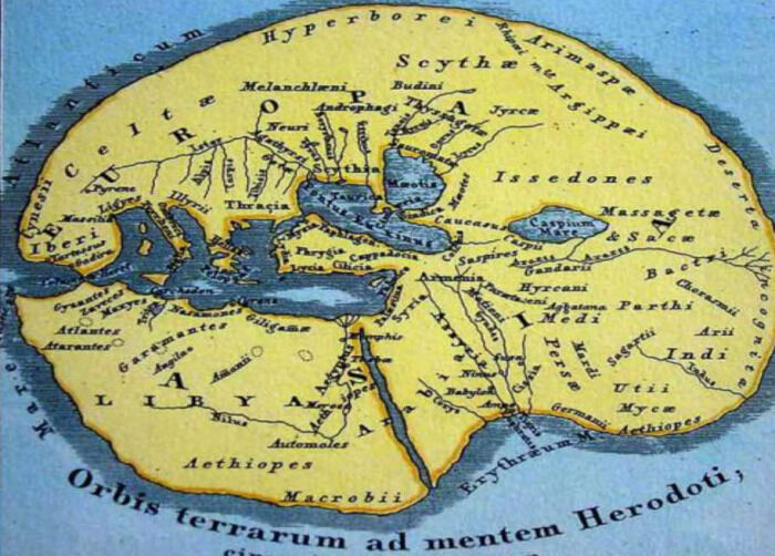 А вот такую карту создал в 400-х годах до нашей эры историк Геродот: