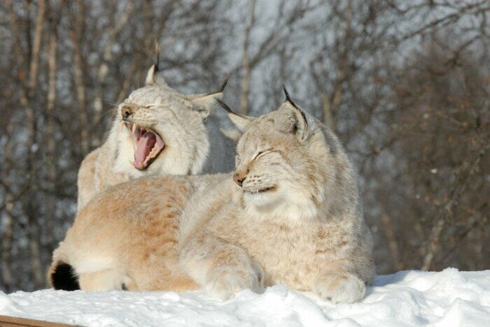 Рысь не самый большой лесной хищник. Самцы этих зверей весят от 18 до 25 кг, а средняя длина тела рыси колеблется в пределах 80-130 см. Естественным противником волка рысь не является. Целенаправленно на «серых» таежный кот не нападает. Однако иногда молодые волки-одиночки, защищая территорию или испытывая голод нападают и на встретившихся им рысей. В большинстве случаев ничем хорошим для волков потасовка с ловким и изворотливым котом не заканчивается. Чаще всего именно рысь выходит победителем из смертельной схватки. Причем со счетом всухую.