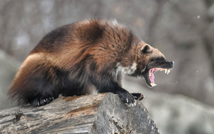 Росомаха обитает по обе стороны великого океана. Представитель семейства куньих в отличие от большинства других животных, описанных выше, не может похвастаться физическими параметрами. Обычно их вес не превышает 20 кг. Охотятся росомахи на мелких животных и птиц, а также подъедают остатки добычи других хищников. В том числе росомахи доедают за волчьими стаями. Но голод - не тетка. Проголодавшийся хищник может нападать на животных куда больших размеров. Известны случаи, когда росомахи заваливали лося. Стая волков для свирепой куницы смертельно опасна. Однако, росомаха может легко «взять измором» и загрызть волка-одиночку.