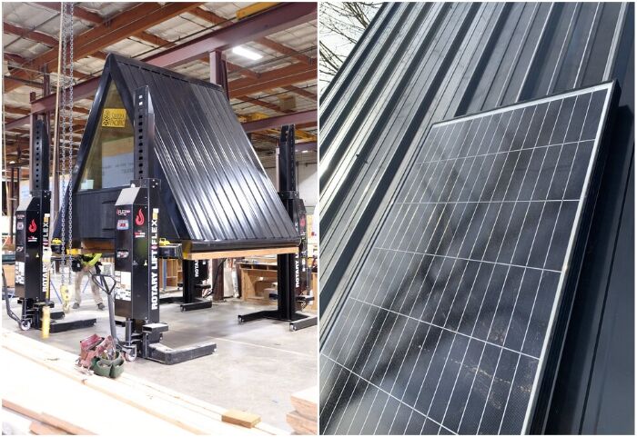 Миниатюрные хижины собираются в цеху компании Bivvi Camp и могут быть укомплектованы солнечными панелями (Bivvi Cabin).