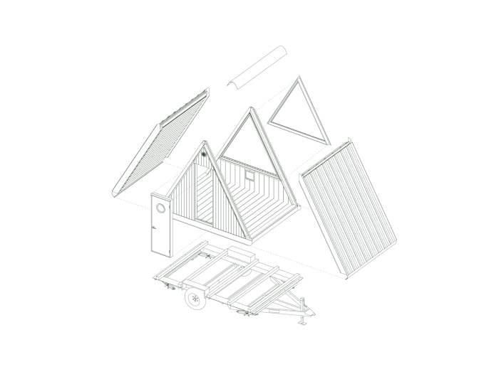 В свете катастрофического ухудшения экологической обстановки разработчики особое внимание решили создать объект, который бы оказывал наименьшее воздействие на окружающую среду и здоровье людей. По этой причине при создании хижины предпочтение отдавалось натуральным материалам и тем, которые можно перерабатывать для дальнейшего использования. Помимо этого, предусмотрена его установка как на одно- двухосный прицеп, так и на деревянную платформу, которую рекомендуют размещать на сваях или опорах для минимизации давления на грунт.