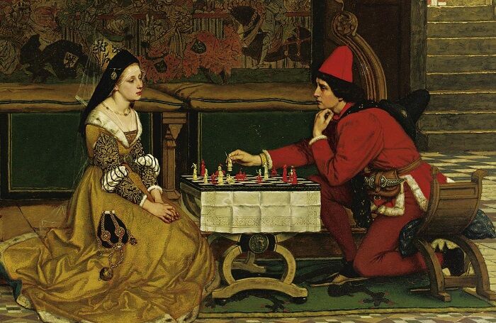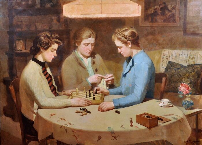 На огромном количестве картин, посвящённым шахматам, женщина обыгрывает мужчину. Это связано не только с тем, что известно много страстных и сильных шахматисток прошлого, таких как Луиза Савойская или Наталья Пушкина (да-да, жена Александра Сергеевича). Считается, что сюжет картин с выигрышем женщины зачастую отсылает к картине Кампи, где Венера (или Афродита) обыгрывает Марса (или Ареса). Это полотно в аллегорической форме утверждает, что женское начало в долгосрочной перспективе всегда одолеет мужское, а любовь победит дикарство. Неудивительно, что на многих полотнах и сама игра в шахматы становится символом любовной игры, флирта, романа.