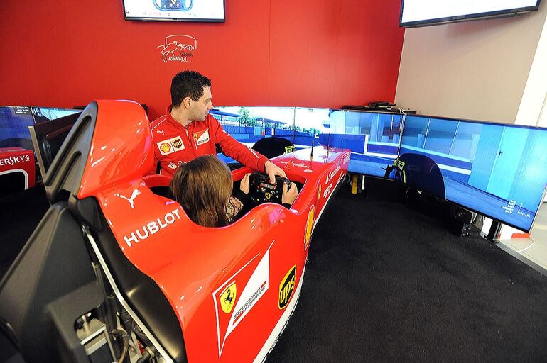 Музей в Маранелло состоит из шести залов, не считая фирменного магазина, кафе и двух симуляторов вождения. Это как раз один из симуляторов, на котором за 25 евро можно погонять целых 7 минут. Не подумайте, что это просто игровой автомат. В первую очередь это тренажер, на котором тренируются профессиональные гонщики. Точно такой же есть, например, у Фернандо Алонсо.