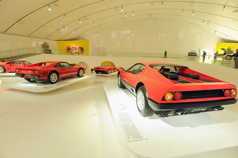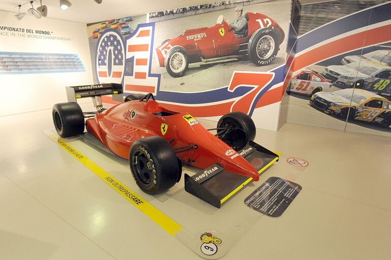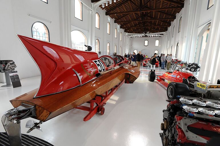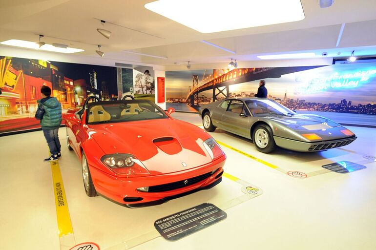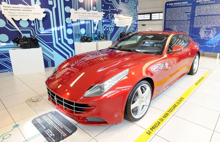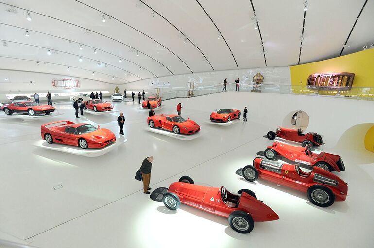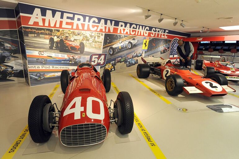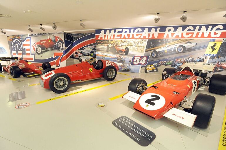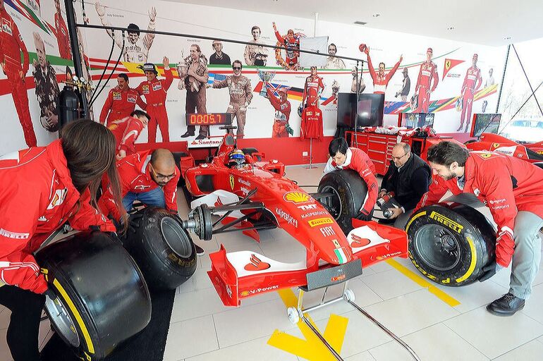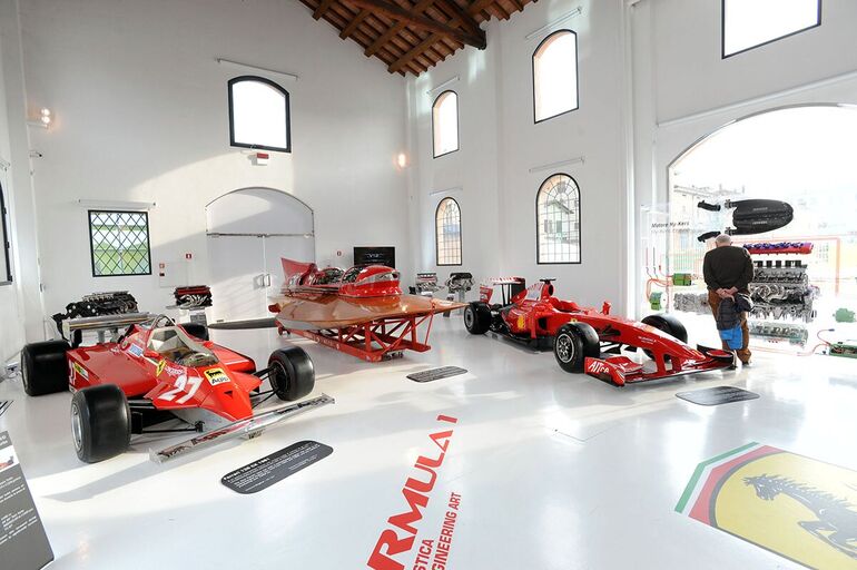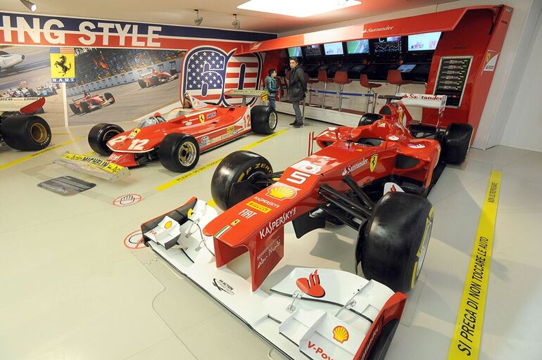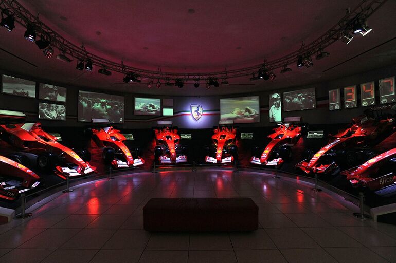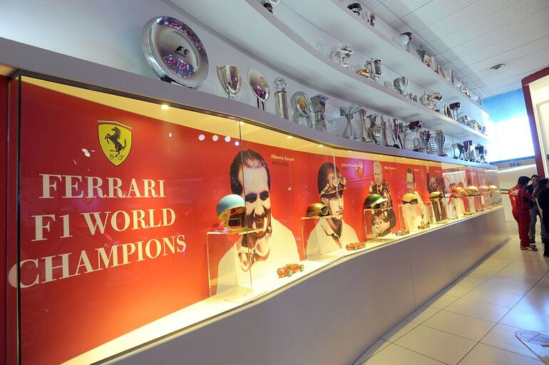 Зал славы команды Scuderia Ferrari. Она принимает участие в гонках «Формулы-1» с 1950 года по сей день и является самой старой и успешной командой в чемпионате. На стендах — портреты великих гонщиков, их шлемы и модели легендарных автомобилей, на которых они побеждали.