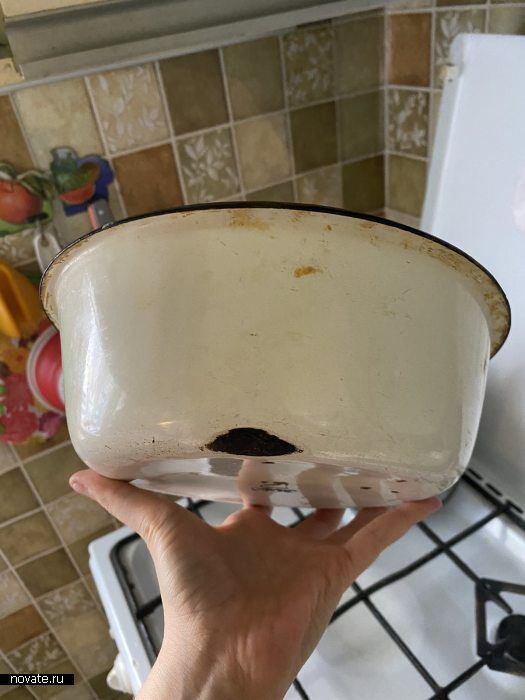 Кроме того, под эмалью такой посуды находится металл, который вступает в очень жесткие химические реакции с продуктами во время воздействия крайне высоких температур. При жарке и разогреве по сути такая посуда выделяет яд-канцероген, который остается в вашей вкушаемой пище. Нельзя экономить при покупке эмалированной посуды. Отдайте предпочтение плотному и надежному эмалированному покрытию. И вот ещё один совет. Если на дне вашей имеющейся эмалированной миски есть черная чревоточина, просто выбросьте ее в помойный бак. Не стоит подвергать риску ваше здоровье. Рак не всегда вылечивается.