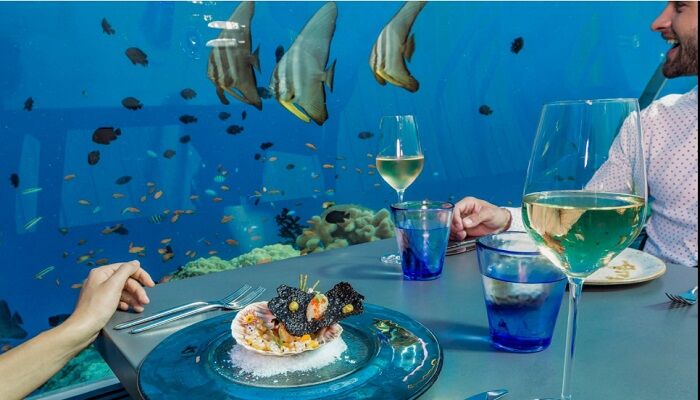 Ресторан Итаа уже давно известен на весь мир своим нетривиальным расположением. Он понравится многим - и любителям дайвинга, и тем, кто боится заниматься подобными вещами, а познать подводный мир как можно лучше очень хочется. А всё потому, что этот ресторан находится под водой и обеспечивает 180-градусный панорамный вид на океанские красоты Мальдивских островов. Да и меню там необычное и экзотическое: например, среди блюдами можно найти кокосовую корку и макароны из рифового Омара.