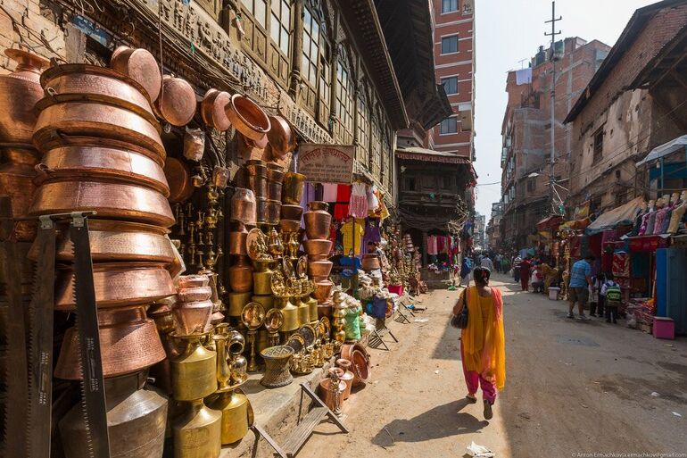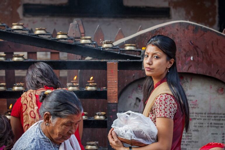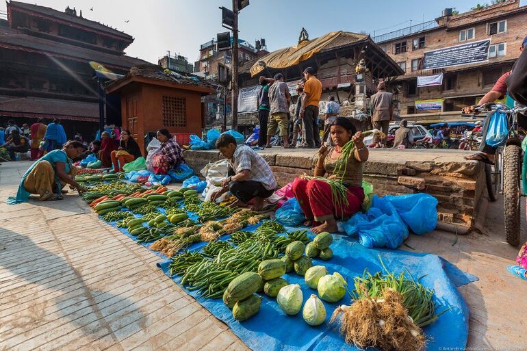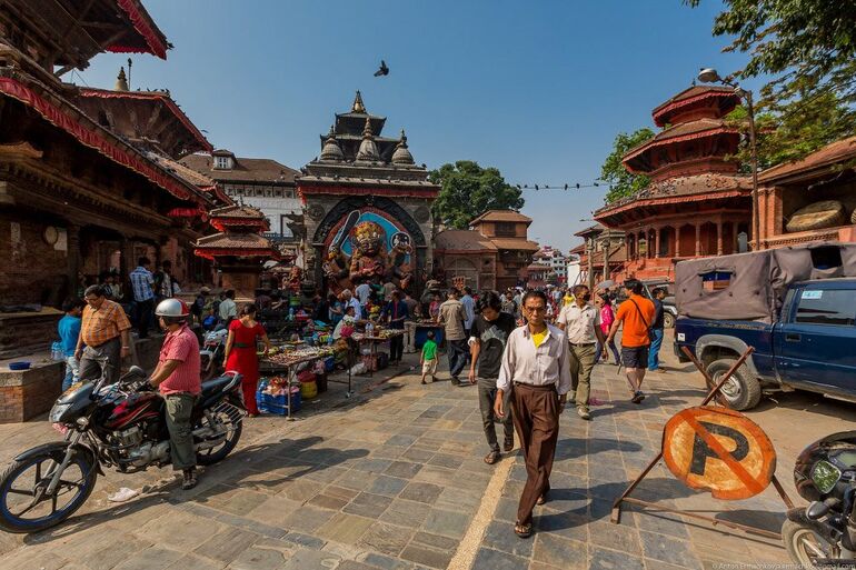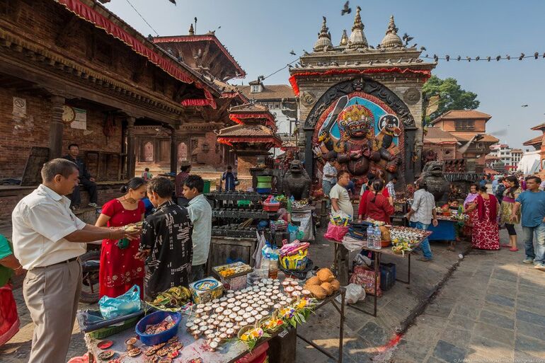 Катманду, центральная площадь, Дурбар-сквер. Социальный, культурно-исторический и религиозный центр Катманду, соединяющий в себе комплекс дворцов и храмов, которые строились между XII и XVIII веками царями династии Малла. С раннего утра тут царит торговая суета делая это место очень привлекательным для любителей жанровой съемки.