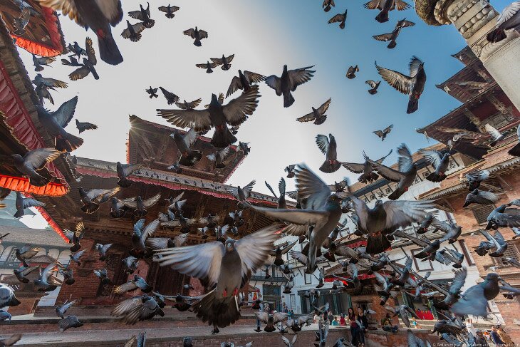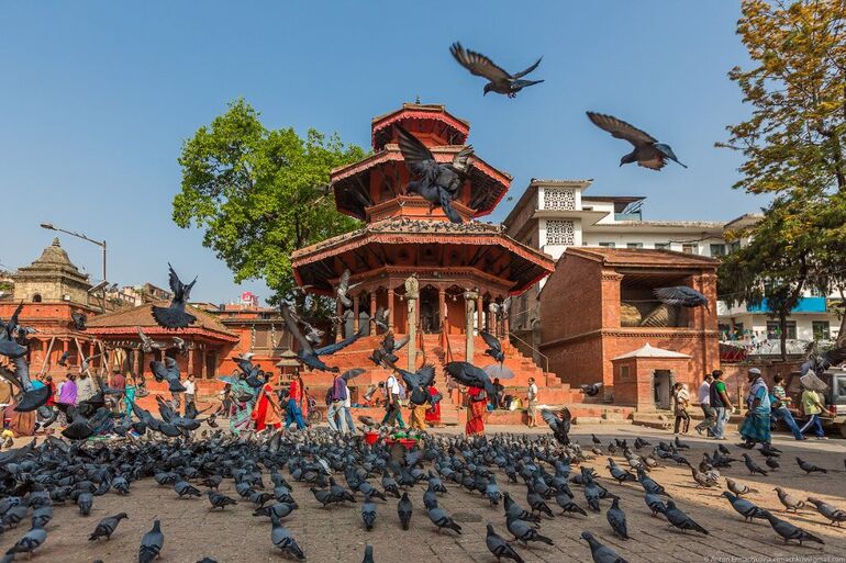 Площадь Дурбар известна своими голубями, птиц кормят при каждом храме.