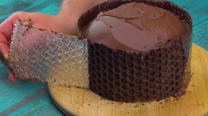 Воздушно-пузырчатая пленка — это необычное, но доступное средство для оформления сладостей. В ситуациях ограниченного времени, но когда все-таки хочется не только приготовить десерт, но и красиво его украсить, упаковочный материал точно пригодится. Обмазывая торт шоколадом или глазурью, можно с легкостью украсить их узором: приложить пузырчатую пленку, а потом убрать. Главное убедиться, что десерт будет холодным, чтобы пленка не прилипала. А если хочется порадовать детей, то можно с помощью шприца наполнить пузырьки пленки цветным желатином, чтобы создать маленькие желейные конфетки.6. Инструмент обучения