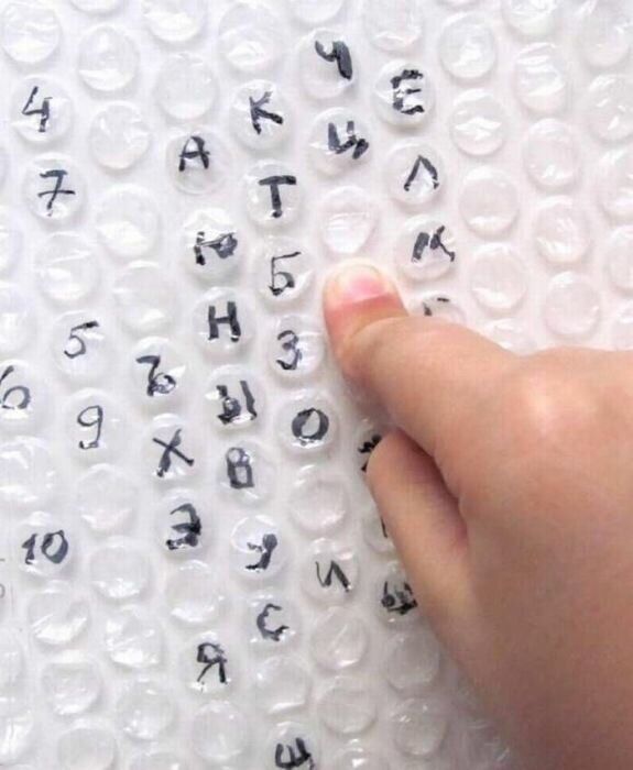 Изучая алфавит или числа с ребенком, никогда не помешает добавить развлекательный момент. Превратить учебу в увлекательную игру поможет пузырчатая пленка. Если ее наложить на нарисованные буквы, можно создать подобие настоящей клавиатуры. Ребенок точно останется доволен.7. Подача напитков