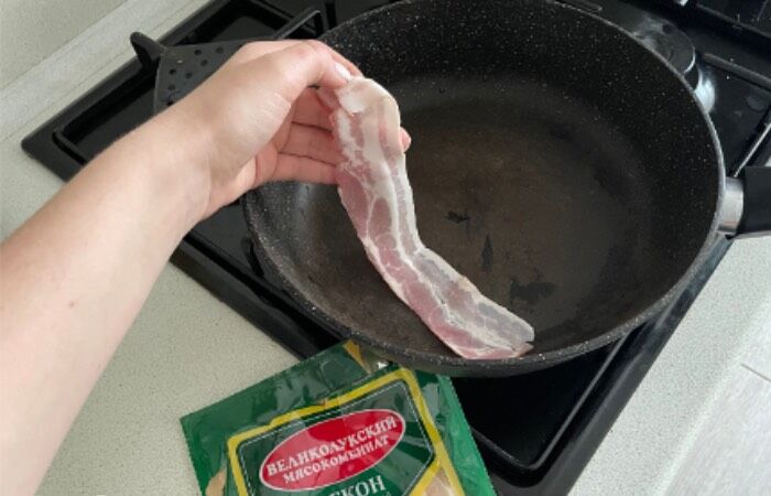 Бекон стоит жарить на холодной сковороде.