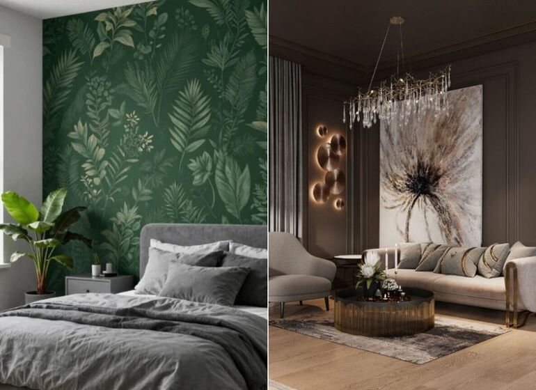 — Текстильные обои — бархат, велюр, плотный лен и даже шерстяные нити, вплетенные в основу обоев. Это добавляет акустического комфорта и роскоши (тренд Quiet Luxury).