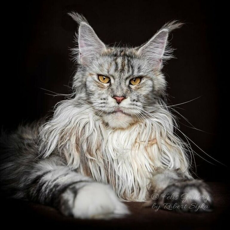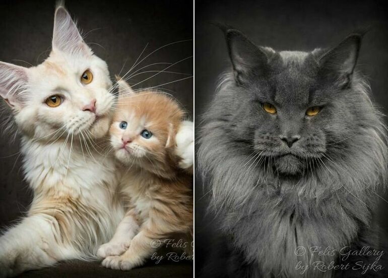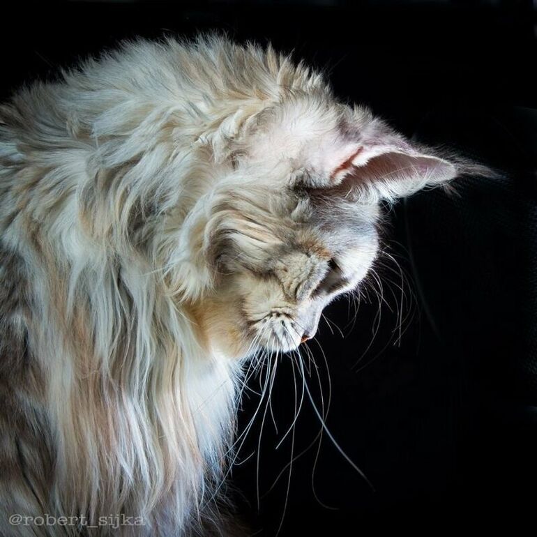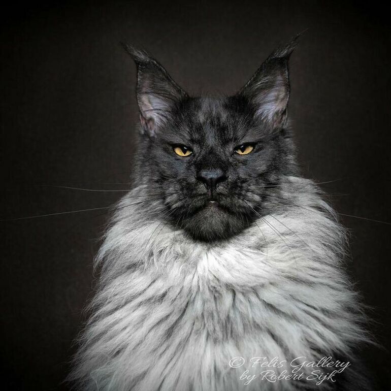 Фотограф из Гонконга Роберт Сижка (Robert Sijka) уже не первый год знакомит мир с мейн-кунами — самыми крупными кошками среди одомашненных пород. Массивные черты, богатая шерсть, и устрашающе-величественный взгляд придают этим кошкам вид настоящих мини-львов. Роберт Сижка любит совмещать две своих страсти: фотографию и мейн-кунов. За годы практики фотограф научился показывать величие этих замечательных кошек во всей красе.