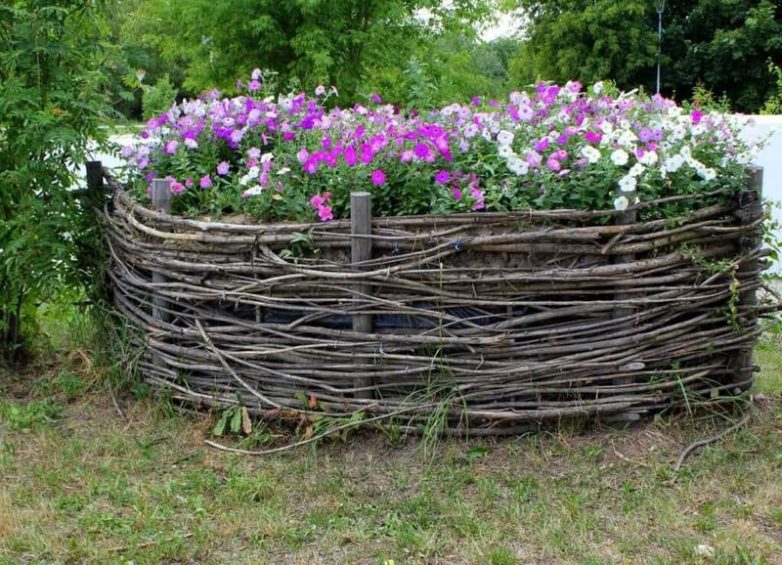 - Какие цветы будут расти на клумбе. Если высокие, вьющиеся — им потребуется опора, которой вполне может стать ограждение. Бордюр не должен мешать свободному росту растений, но при этом сдерживать их в рамках клумбы, отвечать росту и внешнему виду цветов;