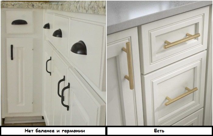 Подбирайте одинаковые ручки для шкафчиков и ящиков