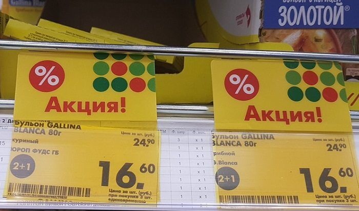 Как только мы видим желтый ценник с перечеркнутой цифрой, рука невольно тянется к товару. Было 300 рублей, а стало 200, как такое можно упустить? Однако не стоит думать, что супермаркеты будут работать себе в убыток. Скорее всего, у товаров со скидкой истекает срок годности или цена специально была сначала завышена, а затем опустилась до исходной цифры (а нам кажется, что это выгодная акция).