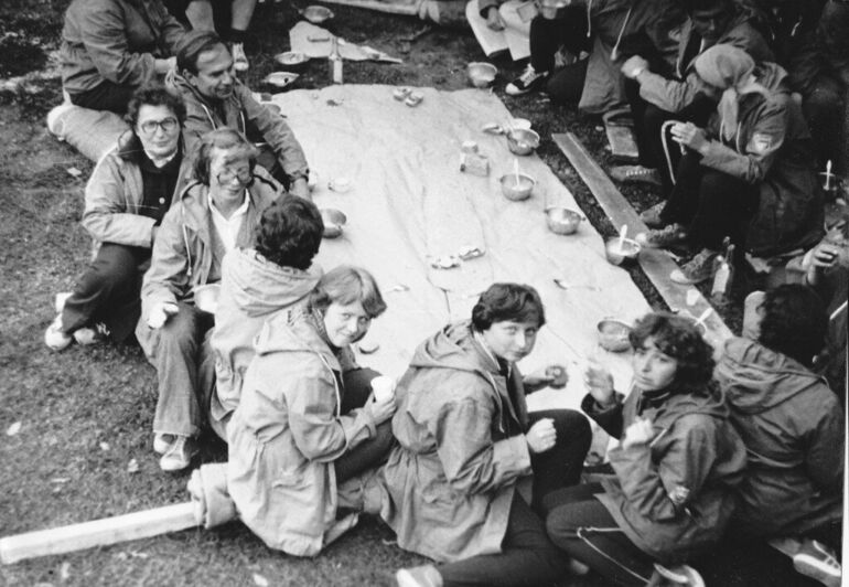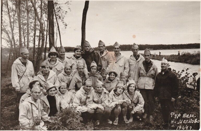 1964. Профсоюзный лодочный отдых. Турбаза Н. Мелково. Лодочная группа.