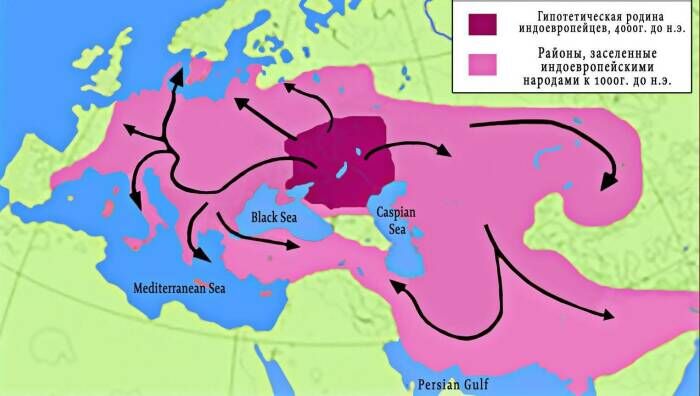 Индоевропейцы или арии – это не какой-то один народ, а огромное множество племен, которые появились в глубокой древности между черным и каспийским морем, чуть севернее. Сегодня это территория таких современных государств, как Грузия, Азербайджан, Армения, Казахстан, Украина и Россия. Оттуда наши общие предки стали расселяться буквально во всем направлениям. Миграция индоевропейцев на Кавказ, Среднюю Азию, Малую Азию, Индию и в Европу происходила примерно с 4000 до 1000 годов до нашей эры, породив несколько больших групп новых народов. Вот лишь несколько примеров, которые позволят ощутить, насколько далеко разошлись по миру индоевропейцы: