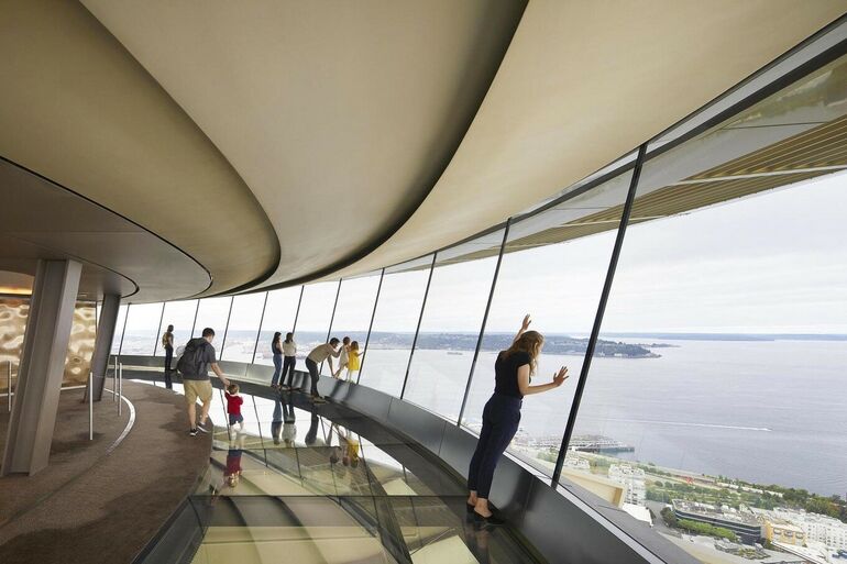 Архитектурное бюро Olson Kundig представило деликатную реконструкцию легендарной башни Спейс-Нидл в Сиэтле, штат Вашингтон, США. Новый дизайн основан на расширении видов — стены были удалены, а барьеры и полы заменены структурным стеклом, что позволило значительно улучшить впечатления посетителей.